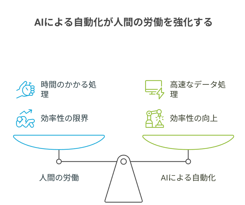 近年、労働人口の減少や働き方改革の推進により、限られた人材で高い成果を出すことが求められています。そこで注目されるのが「AIによる業務効率化」です。AIは膨大なデータ処理やパターン認識に優れており、人間が行うと時間のかかる作業を短時間で処理できるのが大きな魅力です。